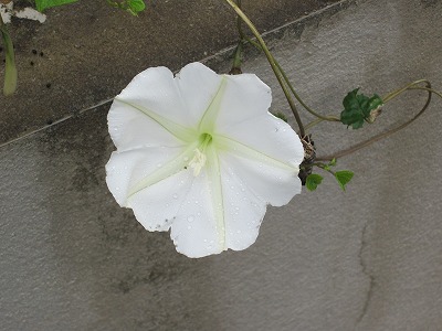にほんブログ村日曜朝・・曇り、なぜか気分が乗らないです。昨日の青空~って、自然現象ですが気分転換にと家の周り見ると朝顔が咲いてました。11月ごろまで咲きますよ~綺麗な白です。大きなつぼみが付いてたから近々、また咲きます。青が綺麗だなと去年見てました。期待してます。少し腰痛でてるんで、整体、のんびりすると思います。それでは