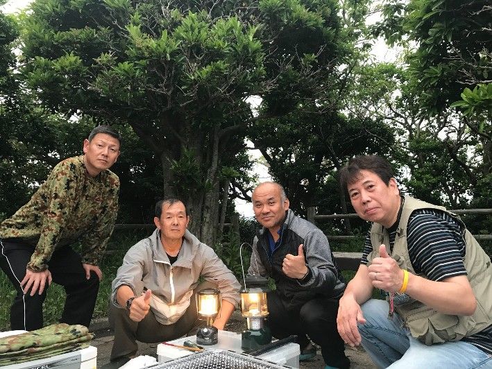 5月3日~4日にかけてキャンプ、磯釣りに行ってきました。何時もの3人+M原さんM原さんはジャム友さんで話をしてるうちに釣りもやるということでたまに参加されます。最初、出発時間を14時にしてたんですが、食材準備していくんで・・そんなに早くいかなくても18時頃からバーベキュウなら17時についてから準備すればということで15時出発に変更しました。15時ならDSCのミヨジャムでれるよ~で、U野さんを除き、3人はDSC公津の杜集合11時からのミヨジャムを1時間堪能、DSCのお風呂で身体を清めて、改めて我が家に集合予定通り15時に出発しました。車は2台、私のノアとU野さんの軽ワゴン、ゴムボート2隻にテント2張、バーベキュウ用品、釣り具とたっぷり積み込んでのスタートです。予定通り17時・・2分くらい前に着き、先ずはテント設営、私は並行して炭起こし18時ごろ・・先ずは1枚男4人、色気なく食い気と飲む気満々で、偶然の1枚はランタン2つの後ろにランタン2つ・・やっぱりKランタンの方が明るい~焼きは肉~からです。本日のお腹いっぱいコース牛カルビ800g、豚ロースカルビ400g、ラム300g、串付きフランク8本玉葱3玉、人参2本、ピーマン3個、茄子2本、椎茸、6個、キャベツ1玉キャベツは半分を焼き用に、1/8をそれぞれ生で肉はやっぱり厚切りが網焼きに最高・・スーパーを数軒回り最終的にJミートで買いました。お米は1人1号、アルミ缶炊飯です。Kさんの炊き上がり・・七輪の炭にムラがあり炊き上がりはそれぞれ・・1番火力の強かった私は既に食べ終わってました。今回の反省・・ご飯は強い火力が必要~、人によって炊き上がり時間かなり違いました。最終的にはそれなりに美味しかったみたい何気にピリ辛きゅうりの漬物が好評で、そこそこアドリブの買い物もうまくいきました。9時ごろには皆2次会やることなく爆睡でしたね3時頃目覚めると、Kさんも起きたんで2人で星空眺めながらモーニングコーヒーやっぱり寒い~とテントに戻って起床時間まで・・豆菓子とスルメ食べながらぼそぼそ話してました。礒釣り編につづく
