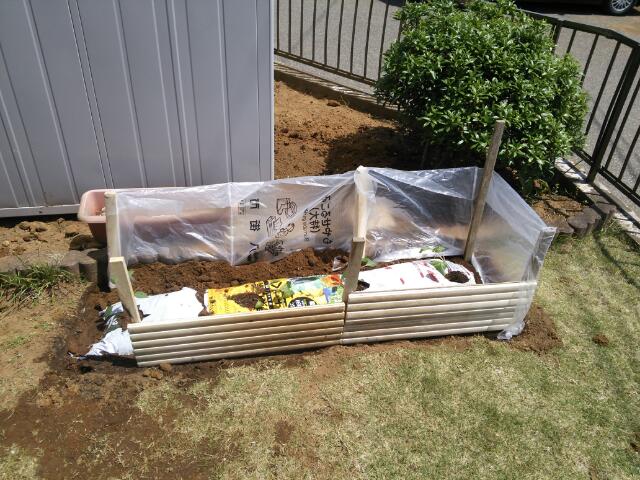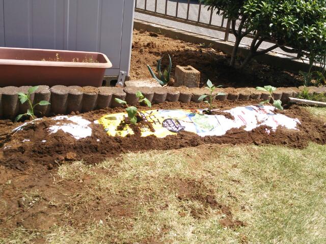 芝生の除去の後、肥料を良く混ぜ込んで・・