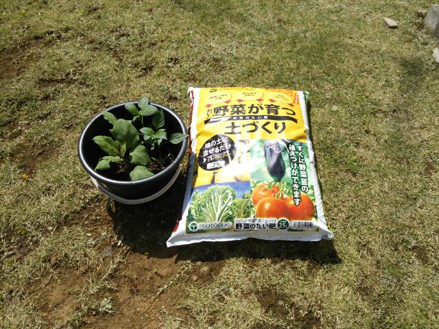 ピーマンと茄子の苗2つずつと野菜の肥料