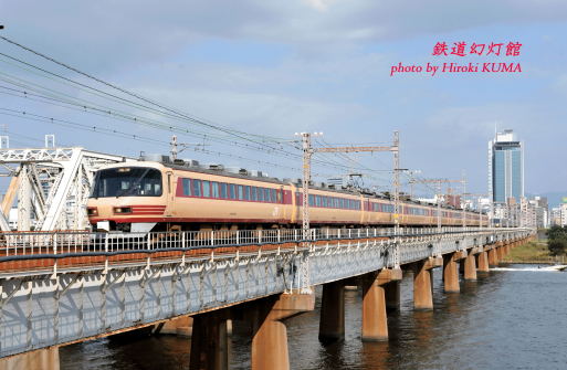今日11月7日は、立冬、知恵の日、あられ・せんべいの日(全国米菓工業会、1985年)だそうです。大阪近郊での定番撮影地といえば、新大阪駅と大阪駅の間にある淀川鉄橋も欠かすことができません。ここでは午前中の下り列車が順光ですので、やはり国鉄色の「雷鳥」とローピンの「日本海」がお目当ての逸品となります。この日も、先日の大山崎・名神クロスと同じ列車を待ち受けることにしました。ただ、貨物だけは北方貨物線を通過する関係から、トラス橋に遮られて撮影できず、そこがこの前とは異なる点です。この朝も、陽射しが肌に心地よく感じる良い天気。淀川では、モーターボートに牽引されたウェークボードがジャンプの練習を繰り返しています。傍で見るほど簡単なものではないようで、着水のたびにバランスを崩して水中に転倒しています。わたしなど、水上で立つことさえできないでしょうから、ジャンプするだけでも、すごいことだと思ってしまいます。そうこうするうちに国鉄色の「雷鳥」がやって来る時刻となり、構図と露出を再確認して待ち構えます。ところで、本日の「思い出の1枚」。何か変だと思いませんか? 2輌目から3輌目にかけて写っている架線柱は、本来ならば車体に遮られて見えないはずなのに、この写真ではしっかりと写っています。もちろん、画像を修整したわけではなく、普通に撮影しています。実は、淀川鉄橋には、大きな架線柱と架線柱の間に背の低いポールが立っています。構造は架線柱と同じで、高さが異なるのです。そのポールが向こう側の架線柱と重なる位置で撮影すれば、このように「だまし絵」的な写真が撮れるのです。どこで撮影しようかとウロウロしているとき、偶然このことに気づき、これはおもしろいと思ってシャッターを切りました。