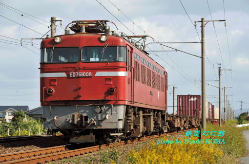 今日11月19日は、鉄道電化の日(東海道本線電化完成、ダイヤ改正も同時実施、1956年)、農協法公布記念日(全国農業協同組合中央会)、一茶忌だそうです。一旦ホテルにもどり、チェックアウトしたあと、「SL人吉号」を迎える前のウォームアップがてら、朝の二仕事めは、赤い電気機関車ED76が牽引する貨物列車を撮影することでした。普段、直流エリアに住んでいる者としては、九州限定のこの機関車を撮影したいというのは、自然な感情と言えます。前回、肥薩線を訪れた際、「SL人吉号」の少し前にED76がやってくることを知りましたので、今回も楽しみにして待ちました。この前はロケーションが分かりませんでしたので、やむなく側面が陰になる方向から撮影しましたが、今回は順光で撮れる場所を見つけましたので、ワクワクしながら待機しました。遠くに光るライトが刻一刻と大きくなるのは、鉄道写真の醍醐味です。慎重にタイミングをはかりながら一写入魂の思いでシャッターを切りました。