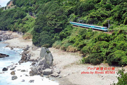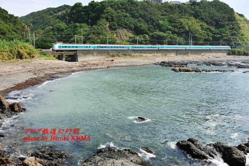 串本で一泊した翌日は、古座を中心とした場所から撮影を開始いたします。昨日のブログでも紹介しましたが、白浜以遠の区間では「スーパーくろしお」と「オーシャンアロー」しか走っていないため、列車本数が激減いたします。少し物足らなさを感じるのでありますが、その分、のんびりとできるのでございます。手前に大きく海が入り、その向こうを「スーパーくろしお」が駆ける渚のポイントへやってきました。串本や古座には、これまでスキューバダイビングを楽しむため、何度も来ていますが、今回のように「海」抜きで串本に泊まるのは初めてでございます。ああ、また南紀の海に潜ってみたいなあ、と「スーパーくろしお」がやってくるまで、潮騒の音を聞きながら、そんな想いにとらわれたのでございます。撮影地:紀勢本線紀伊田原~古座今日8月22日は、チンチン電車の日(東京で初の路面電車を新橋~品川間で運行、1903年)、夫婦の日(毎月)だそうです。