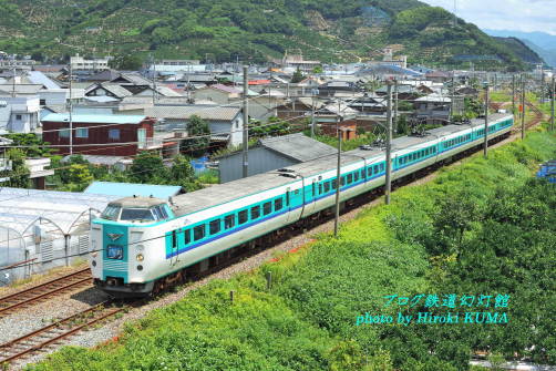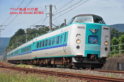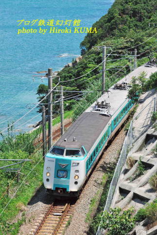 紀勢本線の電化区間は381系が運転されていますが、これも順次、新型車輌に置き換えられることが決まっております。「北近畿」などを中心とした183系の置き換えに次ぐものでありますが、381系「くろしお」は国鉄色ではありませんので、485系「雷鳥」や183系「北近畿」ほどのフィーバーは起こらないかもしれませんが、いずれにしても早いうちに記録しておくにこしたことはありません。というわけで、先日、紀勢本線に出かけてまいりました。紀勢本線、南紀といえば、すぐに海を連想いたしますが、海がらみで撮影できる場所は意外と少ないのでありますよ。そのなかで、和歌山の少し南、冷水浦と加茂郷との間では和歌の浦をバックに「くろしお」を撮影することが可能であります。残念ながら、地形的な関係で、全編成を収めることはできませんが、ならば逆に、先頭部分を中心に海と組み合わせようと考えたのが、本日の「思い出の1枚」。青い海を配して夏色の381系「くろしお」が表現できたのではないか、と自分的にはちょっぴり満足。撮影地:紀勢本線冷水浦~加茂郷今日8月19日は、俳句の日、バイクの日(総務庁)、クラシック音楽の日(日本音楽マネージャー協会、1990年)、トークの日(NTT) (毎月)だそうです。
