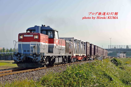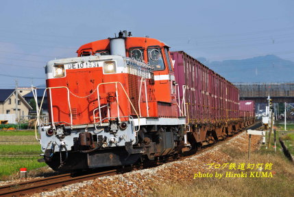 お昼過ぎのローピン・パーイチ貨物を見送ってから高山本線へ移動しました。高山本線でも午後、DE10が牽く貨物が走っているからでございます。氷見線、城端線のDE10は原色機でありますが、高山本線のDE10は更新色機。高岡で会話を交わした地元ファン氏は、更新色機の存在を強調し、車なら今からでも十分間に合うからと、強く背中を押してくれました。高山本線のDE10貨物は速星からスタートいたします。基本的に南・西を向いて撮影するため、逆光になるのが辛いところ。このときばかりは、好天の晴れをちょっぴり恨めしく思ったのでございます。でも、小型のDE10がガスを吹き上げながら築堤を上ってくるさまを見て、氷見線、城端線、高山本線と、DE10に満腹した1日であったことに感謝したのでございます。撮影地:高山本線速星~越中鵜坂今日11月18日は、土木の日(日本工学会、土木学会、1987年)、著作権の日だそうです。