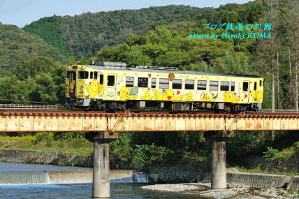 昨日は鳥取でお召し列車が走りました。仕事の都合で撮影には行けませんでしたが、列車の走行時間帯には、今ごろあのあたりを走っているのだろうなあ、と思いをはせておりました。今夏、12系客車を本番の「なにわ」に見立てたDD51重連の訓練運転を撮影したのが懐かしく思い出されます。姫新線の秋を訪ねる旅も、そろそろ帰宅の時刻が迫ってまいりました。納めはやはり、キハ40の「はばタン」。再度登場してもらいましょう。夏のひまわり畑を撮影したころから気になっていた鉄橋でありますが、光線的には午後が最適。しかし、ひまわりカットの撮影は早朝となるため、これまで順光のカットを押さえることができないままでございました。今回、午後の美しい光を浴びて鉄橋を渡る「はばタン」を撮影することができ、積年の課題をようやく1つ解消することができました。ほっ。撮影地:姫新線三日月~播磨徳久今日11月1日は、山手線が神田~上野間の高架線開通で環状運転開始(1925年)、灯台記念日(海上保安庁、1949年)、犬の日(ペットフード工業会など、1987年)、自衛隊記念日(防衛庁)、紅茶の日(日本紅茶協会)、全国家具の日、本格焼酎の日、玄米茶の日、計量記念日(通産省)、すしの日(全国寿司商環境衛生同業組合連合会、1961年)だそうです。