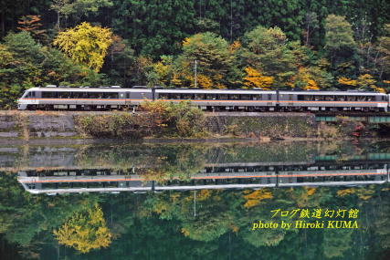 長らく続けてきた秋の北陸、高山シリーズでございますが、この間、北陸や奥飛騨路では一気に季節が進み、雪の便りも聞かれるようになりました。そろそろ転進のときが迫ってきたようであります。飛騨路の最後は、錦秋の水鏡カットで締めくくりましょう。場所は飛騨金山と焼石の間にある有名なダム湖。これまでに何度も訪れている場所で、わたくしにとっては定番のお立ち台でございます。この日は次第に天候が悪化し、露出も厳しくなってきたのでありますが、その分、ダム湖のバックの山や水そのものが暗く沈み、さらに風がほとんど止まってしまったため、みごとな水鏡が出現いたしました。今、この状態で列車が来てくれたら、と何度、心の中で叫んだことでしょう。水鏡というのは、えてして本番でもろくも水泡に帰す、というのをこれまで数多く経験しているからでございます。しかし、このときは違いました。わたくしがこのポイントでカメラを構えていた1時間以上にわたり、無風の水鏡状態が持続したのであります。しかも、所どころに黄色や赤く色づいた木々が点在しており、それはもう、ため息が出るほどの美しさでございます。「ワイドビューひだ」を配し、静寂のシンメトリーとなったのが、本日の「思い出の1枚」であります。久々に列車通過後のモニターチェックをワクワクしながら見た1カットでございました。撮影地:高山本線飛騨金山~焼石今日11月24日は、オペラ記念日、東京天文台設置記念日だそうです。