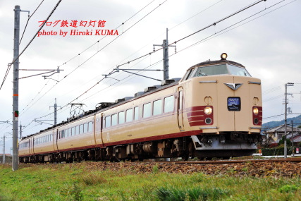 時間が逆転いたします。イチョウの黄葉カットを撮った日の朝一番で見た国鉄色は、こちらの方でございます。この写真を撮ったころまでは太陽が出たり入ったりしており、この183系の前に通り過ぎた287系の「まいづる・きのさき」併結特急は、朝のライジングサンに真白く輝いたのでありますが、わたくしにとって本番となる183系のときには見事に陰って撃沈。あ~あ、でございます。今日11月26日は、ペンの日(日本ペンクラブ、1935年)だそうです。