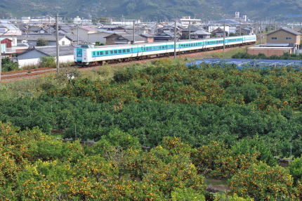 これからのこたつの友といえば、何といってもみかん。残念ながら、わが家にこたつはなく、すっぱいもの系が若干苦手なわたくしでありますが、みかんと鉄道のコラボは大歓迎。考えてみると、これまでみかんと組み合わせた写真って、あまり撮ったことがなかったなあ、と思い、行ってまいりました紀勢本線へ。和歌山でみかんの里といえば、やはり有田。夏に紀勢本線を攻めた折、みかん畑のそばを線路が走っているのを見つけ、実がなるころには、ぜひとも再訪しなければ、と思っていたのであります。もうそろそろかな、と思って出かけましたが、予想どおり、たわわに実をつけ、秋の訪れを告げておりました。まだ青い実の木もありましたから、これから順次収穫がなされるのでありましょう。列車を待っていると、きのくにカラーの113系がやってまいりました。若干塗装がくたびれておりましたが、おお、まだがんばっているんや、と思わずシャッターを切ったわたくしでございました。撮影地:紀勢本線紀伊宮原~簑島今日11月29日は、議会開設記念日、いい服の日だそうです。