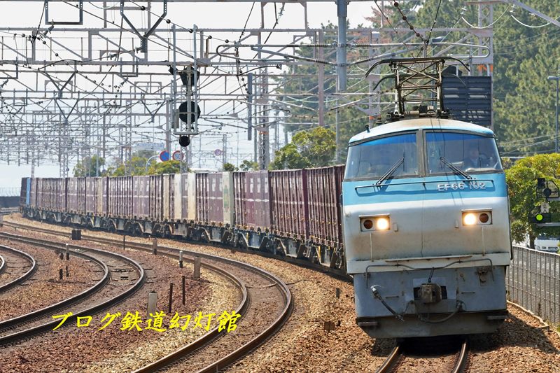 スマシオカーブのEF66 100番台西宮の夙川で撮影したあと、神戸へ移動しました。神戸近辺のお立ち台で忘れてはならないのが、塩屋と須磨の間にある通称スマシオのカーブ。昨日ご覧いただいた夙川カーブと同様、アウト側から編成を捉えるアングルです。この日は夙川と同じく、スマシオのお立ち台もわたくしが独り占め。うららかな春の日差しを浴び、すぐそばに広がる瀬戸内海を眺めながら列車を待つ。至福の時間が流れます。撮影地:山陽本線塩屋~須磨今日5月2日は、郵便貯金の日(郵政省)、歯科医師記念日、交通広告の日(1993)、緑茶の日(日本茶業中央会)だそうです。