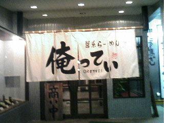 今日は久しぶりにラーメンを食べた。国道16号線内回り、柏市(!)藤ヶ谷にある俺っていで頂いた。どうでもいいことかもしれないけど、柏市って沼南町と合併したからとてつもなく広くなったな。鎌ヶ谷のちょっと先に「ここから柏市」の看板を見つけた時には何事かと思った。この店を選んだ理由は、なんとなく名前に惹かれたから。なんともまぁ適当だ。。。とんこつ醤油のラーメンを注文。「オレ竜」じゃないけど、「俺」って言うくらいだから、特別な何かがあるかと期待していたんだけど・・・全くもって普通のラーメンだった。道路が混むような場所ではないし、駐車場も広くて入りやすいので、今後も足が向きそう。・・・・・個性的な看板が見送ってくれた。。。