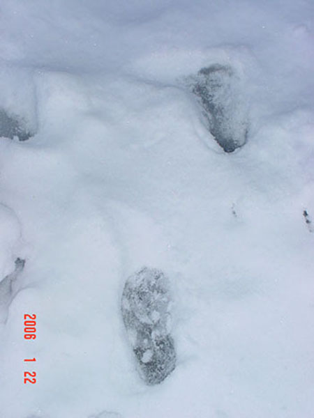 土曜日の朝、窓を開けると一面真っ白の世界でした。何十年ぶりの大雪、子供は大喜び、私は休みの日でほっとしていました。窓を開けて外を見るたびに子供は興奮、朝から外に出たい~が始まったのでフル装備で午前、午後と外に出ては雪だるま作り&雪合戦をして雪を満喫しました。それでもまだ遊び足りなく、帰りたくない~と言っているのを連れて帰りました。寒さ知らずの子供には驚きです!・・・子供の足跡・・・