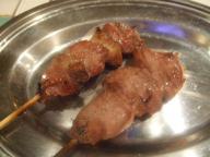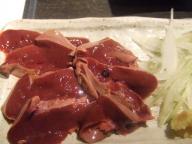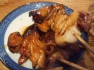 落ち着いたバーの後は、大衆居酒屋へ行きたいな。先週行ったばかりですが、「ゑちぜん屋」へ行きましょう。まずは黒ホッピーで乾杯!なか二つもらって、わけわけです。美味しい日本酒・焼酎も良いけれど、くつろぎを感じる飲み物ですね。鰻肝焼き売り切れで残念・・・本日はレバ刺しからスタート。塩を振ってあるレバ刺しにごま油が添えて出てきました。お醤油+にんにくバージョンも試したいので小皿もらいましょう。レバ刺し大好き♪日本酒も何種類か置いてあるのですよね。「飛露喜」「上喜元」「十四代」と厳選された銘柄です。本日は飛露喜をお願いしました。特別純米で美味しいですね。焼き物が次々とやってきます。「つくね」「はらす」「ぼんじり」。鶏のお尻のとがった部分である「ぼんじり」は希少な部位ですからね。今日は新潟でビール星人さんが「案山子」だったようですね。kiyomaroさんが帯広だったかな?ショテマエは新橋ですよ。美味しい日本酒・焼酎はどこでも飲めるし、地元立石ならもっと安い。なんで、いろんなとこで飲むんだろ?「野菜もちゃんと食べるんだよ」不健康な飲兵衛に、こんな台詞がたまに聞こえてくるの。最後にモツ煮込みをいただきながら、「月の中」。ラストオーダーの時間までくつろいでしまいました。ありがとう。