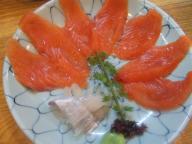 23時20分。立石「さくらい」で途中下車。店内には常連客のツネさんのみ。閉店まぎわの、のんびりした「さくらい」です。日本酒は麓井のひやおろしから。上品な香りを楽しみながら、熟成された日本酒の旨みを味わいます。麓 井 ひやおろし「輝ら星の如く」 吟醸生詰め原酒肴は「銀聖」をいただきました。競走馬のふるさと日高、その沖の定置網でとれる鮭。川を上って痩せはてる前の鮭ですので、脂ものって美味しいですね。ツネさんは、ちょっと遠くからこの「さくらい」に通っています。かなりストレスがたまるお仕事で、「さくらい」に来るとストレスがすぅとなくなるとか。美味しい日本酒だけじゃない。居心地なんですよね、居酒屋は。最後は肉巻きにんにく串で芋焼酎「萬膳庵」。ショテマエも疲れがたまってきたのかな?とりとめもないお話をして終電に。さくらいさんと鍋の相談をしました。また、冬に集まりたいですね。