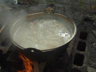 仙台の居酒屋「かん」主催の芋煮会に行ってきました。朝9時より河川敷での開催です。ついてすぐに乾杯!エビスの生をお天道様の下でいただくなんて、幸せすぎますね。続々と「かん」の仲間が集まってきて、そのたびごとに乾杯!幸せに酔い始めます。 鍋で仕込んでいるのは地鶏。料理酒が綿屋とか。贅沢な鍋ですよね。 鍋が出来るまではバーベキューを楽しみます。蟹・ホタテ・秋刀魚・ジンギスカンと贅沢に焼いております。お酒は生ビール(3樽)、日本酒、ワイン、焼酎と揃っていますね。ショテマエも2本ほど差し入れました。5年熟成金柑酒 本格焼酎仕込み 720ml西酒造の金柑酒。あっというまに無くなりました・・・はなとり 20°1800ml20度でライトな黒糖焼酎。こちらも楽しんでいただけたようです。さあ、鍋が仕上がりました。う、美味い!地鶏の旨みがとろけるような芋煮ですね。同じカウンターで、同じ空間を共有する仲間達。今日だけは同じ時間も共有します。日本酒が好き、かんが大好きだけで集まったみんなは、仕事も来る時間もまったく違うけど、同じ放課後のクラブ活動に参加する仲間なのです。素晴らしい時間をつくってくれたかんさんアリガトウ!また、飲みに行きますね。