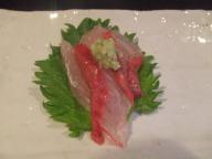 21時頃の到着となった「源氏」。ちょっと遅めの到着となりましたので、すいていますね。のんびりと燗酒いきましょうか。 源氏の燗酒は、コップ酒。このグラスが素晴らしいのですよね。どこで売っているのでしょう?お通し1杯目は、煮物とおしんこ。丁寧につくられた煮物にはホタテとかも入っていて、とても美味しく、お酒がすすみます。後から親子連れが入ってきました。親父が日本酒を飲み、子供はウーロン茶。源氏に親子で来るとは、素晴らしき英才教育!銀杏とか、鯵の刺身とかも頼んでいますね。子供のころから、本当に美味しいものを食べることにより、素晴らしい飲兵衛に・・・ 二杯目の燗酒をいただきますと、お通しが出てきます。笹かまとカボチャの煮物。練り物で一杯、至福の瞬間。今年は遠征どこ行くのかな?とりあえず4月に旭川、5月に札幌にホテル予約入れておきました。6月に名古屋も行きたいところですね。 3杯目の燗酒と共に、お刺身が出てきました。本日はマグロ・タコ、そしてホタテ。さっきの煮物にホタテのヒモは利用されたわけですね。視点が料理する人になっているショテマエです。英才教育の親子の会話が耳に入ってきます。子供は高校受験中のようですね。落ちたら働くという息子に対して、学歴について落ち着いて話す父親。例が両津勘吉と警察官の階級社会についてで面白かったな。ちなみに両津勘吉の位置は・・・1 警視総監 2 警視監 3 警視長 →道府県警本部長4 警視正 →警察本部部長5 警視 →警察署署長6 警部 7 警部補 8 巡査部長 → 大原大次郎 (巡査長) → 両津勘吉9 巡査 1種採用者は警部補の階級を初任、2種採用者は巡査部長の階級を初任とのことです。超こち亀頑張れ息子さん!源氏でお酒を飲むことが出来るまではもちょっとかかるけど、本物を知っているお父さんと仲良くね。単なる酒飲みにとって、学歴なんかは役にたたないです。でも、頑張ると言うことと、素晴らしい友人と出会えたことが残っていますね。ちょっとだけ高田馬場が懐かしくなったところで、もう1軒!最後にリンゴをいただき、ご馳走様でした。仙台の居酒屋「源氏」