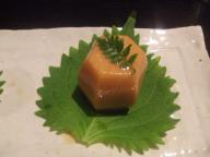 仙台壱貳参(いろは)横丁の「すけぞう」へ。久々ですがすけぞうさん元気にやっているかな?ピークが去った後でしょうか、カウンターが埋まっているのは手前の2席だけ。じゃあショテマエは奥に陣取って、まずはビールから。エビスの生です。 本日はおまかせでお願いします。5品ぐらいで2500円とリーズナブルなコースです。 続いて出てきた豆腐は自家製。これは日本酒にチェンジですね。雅山流からはじめましょう。 お刺身美味しいですね。お話をうかがってみると、本マグロ。仕入れも教えていただきましたが、高いのですね~ここでマグロをお勉強。「本マグロ」(クロマグロ)・・・一番高くて美味しい。「ミナミマグロ」(インドマグロ)・・・本マグロに似て美味しい。「メバチマグロ」・・・一番獲れる。普通に美味しい。「キハダマグロ」・・・普通に美味しい。「ビンナガマグロ」(ビンチョウ)・・・ビントロという脂身が美味しい。あと天然と養殖があったりして、様々なのですね。南紀勝浦や焼津にも飲みにいきたいなぁ。 焼物はワラサ。ワカシ→イナダ→ワラサ→ブリだったから、もう少しですね。 寒くなって牡蠣も美味しくなってきました。牡蠣の味のしみた大根も美味しいです。日本酒は十四代や磯自慢をいただき、大満足。最後にとっておきのウイスキーをご馳走になり、ありがとうございました!すけぞうさんは奥が深い・・・今度は焼酎までたどりつきますように・・・「すけぞう」宮城県仙台市青葉区一番町二丁目4-38 壱貳参(いろは)横丁17:30~23:00日祝休
