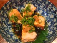 金曜日の「かん」は満員・・・どこか他探そうかな、と思っていたらあけていただきました。奥に団体さんも入って大忙しの「かん」。まあ一杯飲みながら気長に待ちましょう。金曜日だし。 シンプル・イズ・ベストの湯豆腐。湯豆腐の美味しい季節になってきましたね。かんさんとこの湯豆腐は出汁も美味しいのですよね。日本酒は「ひやおろし」が飲みたいな。乾坤一 純米 1.8L今日の乾坤一はひやおろし。一回火入れの生詰、山田の50。あいちゃんたっぷりこぼしてね。 今日のメインは「たらきく」。真鱈の白子です。BGMのクラシックも冬のイメージでかかりました。今年も後少しですね。(しんみり)舞茸を焼いていただきました。秋ですね~(さっきまで冬だったのでちょっと戻った)秋を味わいに遠征したいですね。京都に行きたいけど、山の中の温泉も良いかもしれません。ただシーズン中の観光地は一人旅派には厳しいですよね。どこかオススメあります?
