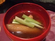祝日の土曜日。今日はお休みの居酒屋さんが多い中、「かん」があけてくれて嬉しかったですね。常連さん(たまに「かん」のカウンターの中にいる方)が今日はご友人と飲んでおられました。反対側のカウンター奥でビールから。 お通しの鳥とごぼうのスープが美味しいですね。予想通りちゃんと出汁からとって、丁寧につくっていただきました。たまに料理をしているショテマエには見えていますよ!本日のお遊びは「かん」の飲み比べ。昨年のと今年のと飲み比べてみました。やっぱり古酒のほうが、落ち着きがあって美味しいですね。いや、若い方も・・・とカウンターの向こうとこっちで酒談議が始まります。評価し評価されるお仕事をしていると、ほっとする評価を求めているのかな? ひがしものであるマグロのカマトロをいただきます。近海天然もののマグロは美味しいですね。志太泉 純米吟醸「八反35号」1800ml日本酒は静岡志太泉純米吟醸の八反錦です。静岡行きたいですね。清水の金の字でモツカレーをいただき、静岡の鹿島屋で磯自慢など静岡の酒を飲み、静岡おでん愛ちゃんでしめる。次の日は富士宮やきそばでも良いし、浜松に抜けて貴田乃瀬も行ってみたいですね。思い出とまだ行った事のない居酒屋一人旅があります。高知の四方竹をいただきます。四方竹は秋の筍。天ぷら、炊き込みご飯にしても美味しそうですね。 スタッフの人(新人さん)が四方竹が日本酒の銘柄だと思って、一升瓶を一生懸命探していたというのも酒場の楽しい話題のプレゼント。かわいかったですよ。 最後に牡蠣クリーム煮をいただきました。この味を自宅で再現中ですが、上手くいかないですね・・・本日もごちそうさまでした!