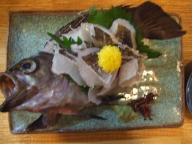 本日は連休明けの立石「さくらい」へ。連休最終日にさくらいさんが釣りに行ったとのことで、釣果に期待です。最初にくぃっと下町ハイボールを頂いた後は日本酒で南。ホワイトボード最上段にあった「釣りメバル松皮造り」をいただきます。 豪快に1匹を使っていただいたメバル。釣りの神様に感謝ですね。日本酒はいつしか義侠に。豚肩ロース焼肉風も追加。焼酎薩摩寿と共に。