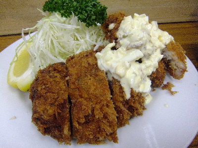 本日のランチは青砥の「かつ城」へ。先客は大グループ。おばちゃんが大宴会をしています。こちらも2名用のテーブル席でビールを始めましょう。先に到着した小鉢とおしんこ。ビールの肴になりますね。ありがとうございます。メインメニューは、日祭定食。海老、ひれ、コロッケのセットで1300円。なかなかのボリュームですね。衣が厚めの下町仕様ですが、からりと揚がっていますね。ちょっとだけ油の重さが気になりました。ビールをあけて、ご飯と味噌汁で揚げ物。最後のアイスコーヒーが嬉しいですね。どうもごちそうさまでした。「かつ城 (かつき)」東京都葛飾区青戸3-39-10 明徳ビル 2F11:30 - 14:0017:00 - 22:00月休かつ城 (とんかつ / 青砥駅、京成立石駅)昼総合点★★★☆☆ 3.0