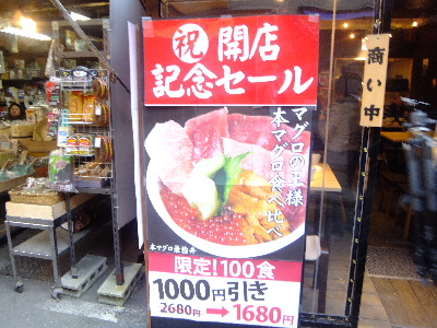 本日の築地モーニングは「黒瀬三郎鮮魚店」。場外に新しく出来た海鮮丼のお店です。店頭に大きな看板がありました。開店記念セール、マグロの王様本マグロ食べ比べ、限定100食、2680円のところを1680円。なんと1000円も割引。まだ綺麗な店内に入ってみましょう。メニューは海鮮丼オンリーですね。・厳選海鮮丼 1380円・本マグロ中トロと炙り丼 1580円・築地究極丼 1900円と並んでいます。こちらは2680円ですからね。「最強」ですからね。期待に胸が高まります。やってきたのがこちら。確かにマグロと雲丹とイクラが載っていますね。こぼれおちそうな海鮮のかわりに、ごはんの地肌が見えています。雲丹とイクラは普通。さすがに偽物ではなかったですが、築地もピンきりであることを思い出させてくれます。マグロは「おそらく」本マグロだとは思いますが、赤身に旨さは感じられず。場内のお店や立石の深夜食堂でもっと良いものを知ってしまうと、かなり残念なレベル。パネルマジックですね。あくまでイメージなのかもしれません。でも期待値はパネルの商品。それを期待して入ったお客さんはガッカリして出てくるわけです。築地市場も移転が決まって、最後の荒稼ぎの時期に入ったのでしょうか?何店舗も営業する大型店が名前も変えてやるとは非常に残念です。インターネットで商品を売るEコマースの現場でも、悪い業者が居ます。写真をうまく撮れない、ページがうまく作れないサイトオーナーに。「売れる商品ページを製作代行します」と高額な料金で、綺麗な写真を外からもってきてページを作ります。写真はイメージですと小さくのっけて・・・でもネット通販はリピートの商売。広告費をかけて集めた新規ユーザーがまったくリピートしない、レビューの点数が上がらないといった結果になります。いや、最近はユーザーも賢くなって、ページが綺麗になっただけで売れずに終わることも多いようです。こんなパネルマジック店舗を増やさないために、何が出来るか?リアルでもネットでも重要な、点ではない線のセールスの戦略を、どのように伝えるか?それを考えながらのモーニングとなりました。勉強になりました。どうもありがとうございました。「黒瀬三郎鮮魚店」東京都中央区築地4-12-67:00~15:00黒瀬三郎鮮魚店 (寿司 / 築地駅、築地市場駅、東銀座駅)昼総合点★☆☆☆☆ 1.0