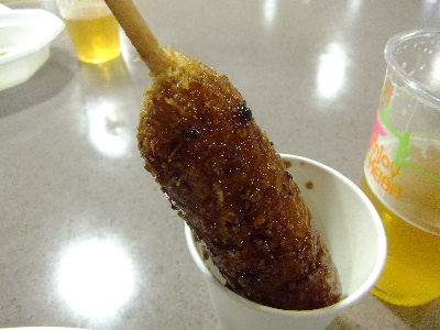 本日のランチは福島競馬場です。1階のフードコートにあるお蕎麦屋さん「花月寿」で見つけたのが会津棒。価格は150円。イノベーターとしては試してみるしかありません。ソースをつけてカップで提供いただきました。会津のお米を固めたライスフライ?あとはひき肉を練りこんでいるのかな?ソースの味が勝っていますね。カツ丼にソースをかけるから会津なのでしょうか?謎が深まる会津棒。白虎隊とも八重たんとも関係なく生き残って欲しいメニューでした。会津若松の魂を感じましたので・・・ごちそうさまでした。「花月寿 福島競馬場店」福島県福島市松浪町9-23 福島競馬場 1F9:00~16:30花月寿 福島競馬場店 (そば(蕎麦) / 曽根田駅、福島駅)昼総合点★★★☆☆ 3.0