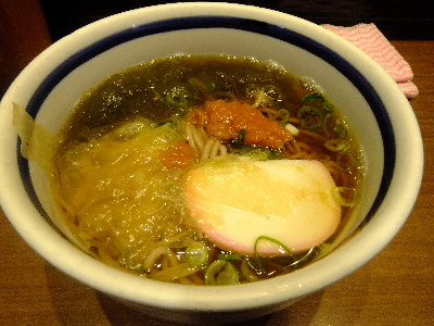本日は早朝の新幹線で京都まで。新幹線のなかでお弁当という気分でもなく、品川駅から歩いてすぐの「梅もと」へ。立ち食い蕎麦のお店です。券売機で薬膳天そばをぽちっとな。生玉子も追加しちゃいましょう。ハードな出張が続きますからね。ご飯とのセットもの、アルコールもありますが、我慢しましょう。移動時間が長いので疲れますが、座っているのでカロリーは消費できなそうですので。おばちゃんが玉子を上手く割れなくて、ちょっと残念なビジュアル。クコの実、マツの実が入った薬膳天は揚げ置き。お蕎麦のつゆを吸って生き返ります。しょっぱめのツユ。そしてふがふがしたお蕎麦。これぞ立ち食い蕎麦の王道ですよね。ほっとする美味しさです。冷たいお弁当ではなく、あったかいお蕎麦でモーニング。今日も一日頑張れそうな気分です。どうもごちそうさまでした!「梅もと 品川店」東京都港区港南2-2-5[月~金]6:00~23:00[土]6:00~22:00[日]6:00~21:00梅もと 品川店 (そば(蕎麦) / 品川駅、北品川駅、天王洲アイル駅)昼総合点★★★☆☆ 3.0