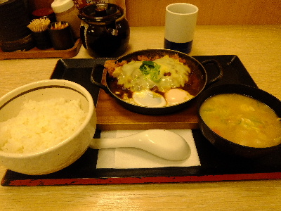 本日のモーニングは三田で途中下車。三田でのモーニングなんて慶応ボーイみたいですね。「かつや」で朝からデミたまをきめちゃいましょう。デミたまチーズカツ丼が619円、デミたまチーズカツ鍋定食が724円。300円ぐらいの朝メニューもありますが、限定商品はいつなくなるかわかりませんからね。早めにいただきましょう。豚汁も付くデミたまチーズカツ鍋定食のほうでいただきます。カツはチキンカツ。濃厚なソースにさらに玉子をからめてオンザライス。たまりません。大満足のモーニングでした。ちょっとお腹が重いけど・・・「かつや田町店」東京都港区芝5-27-13Y・A三田ビル1F7:00〜23:00