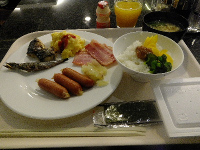 本日のお仕事は那覇。ホテルは県庁前から近い「ホテルサン沖縄」です。大浴場があるのが嬉しいですね。朝食はバイキング形式。スクランブルエッグにベーコン、ソーセージ、お魚。納豆と海苔もいただきましょう。ヤクルトとオレンジジュースのドリンクぶすまも忘れずに。どうもごちそうさまでした!「ホテルサン沖縄」沖縄県那覇市久茂地1-5-15