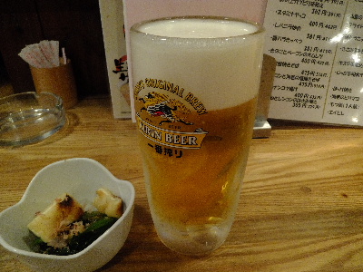 本日は京成青砥で途中下車。「鳥の山家」さんで一杯やっていきましょう。カウンターに座ってビールからスタートです。一番搾りの中ジョッキ(493円)です。若い店員さんがたくさんいる店内。グループ客がテーブル席で盛り上がっていますね。こちらも若いサラリーマングループ。カウンターのソロは焼き鳥から。続いてつくね。何か足りないですね。心の中にぽっかりと空いた穴。自分で埋めることは難しいのかな?玉ねぎのフライをお願いします。オニオンリングを期待していましたが、やっぱり玉ねぎのフライでした。間違いはありません。最後にもう一杯だけ。ハイボールをいただきましょう。明日からはまた出張。頑張っていきましょう。ごちそうさまでした!「鳥の山家」東京都葛飾区青戸6-4-25[月~土]17:00~翌1:00[日]17:00~24:00