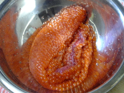 本日は築地でお買い物。もっと早く来たかったのですが、歯医者などの予定がありお昼近くに。結局場外の「三宅水産」さんで。鳥藤さんの隣です。生の筋子を購入。塩水で丁寧にほぐします。手が冷たいですけど美味しいもののために我慢。フレッシュな醤油とフレッシュな生酒でたれをつくりますよ。雲丹もスタンバイOK。雲丹・いくら丼の完成です。どうもごちそうさまでした!「三宅水産」東京都中央区築地4丁目8番5号5:00~15:00日祝、休市日休
