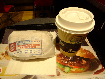 本日のモーニングは浅草橋で途中下車。「バーガーキング」でいただきます。歯医者のあとということで痛みが残っていますが、おなかは空くのですよね。ビーフハムサンドとドリンクのセット(430円)をお願いします。昔マクドナルドだった場所ですね。先客はサラリーマンが多いです。メインのビーフハムサンド。ビーフも入っておりますが、トマトとスライスオニオンを感じさせる朝のお野菜サンド。美味しくいただきました。どうもごちそうさまでした。「バーガーキング 浅草橋東口駅前店」東京都台東区浅草橋1-30-1 浅草橋東口ビル 2F7:00~22:00バーガーキング 浅草橋東口駅前店 (ハンバーガー / 浅草橋駅、馬喰町駅、東日本橋駅)昼総合点★★★☆☆ 3.0