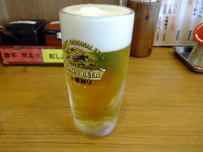 本日は築地でお買い物。歯医者があって出陣が遅れたため、ランチタイムはどこも長蛇の列です。道路を一本渡って「ふくちゃん」で一杯やっていきましょう。カウンターは空いておりました。まずはビール(480円)からスタートです。アルコール類はビール、ホッピー、ハイボール、日本酒、焼酎。ウーロンハイ、緑茶ハイ、レモンサワーなど。焼酎の種類が豊富ですね。赤霧島、赤兎馬紫、幻の露、白水とあります。九州を感じさせるラインアップですね。博多ラーメンと餃子セット(880円)も到着しました。ほのかに香る豚骨の香り。現地大衆店テイストの落ち着けるラーメンです。紅しょうがや明太高菜に加えて激辛明太子も卓上に有りフリートッピングというのが嬉しいですね。餃子も普通に美味しかったです。朝からやてくれたら築地モーニングで寄れるのですが・・・どうもごちそうさまでした!「生粋博多らぁめん ふくちゃん 築地総本店」東京都中央区築地6-9-5 ふくちゃん11:00~23:30生粋博多らぁめん ふくちゃん 築地総本店 (ラーメン / 築地駅、築地市場駅、新富町駅)昼総合点★★★☆☆ 3.0