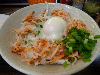 本日のモーニングは青物横丁「おにやんま」。出張続きで今月の月替わりがまだでした。5月は海と大地の恵み!桜海老と新タマネギのっけうどん(550円)。冷やしのぶっかけタイプ。桜海老にタマネギ、かいわれに温玉。さっぱりと美味しくいただきました。ごちそうさまでした!「おにやんま東品川店」東京都品川区東品川4-1-20[月〜金]7:00~15:00 17:00~23:00[土日祝]7:00~15:00