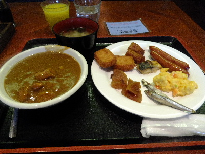 本日のモーニングは沖縄那覇「リッチモンドホテル」にて。昨晩はクライアントの接待、それが終わった後の自分で自分を接待。2時近くまでやらかしてしまいましたが、朝イチの便で羽田へ。モーニング開始と共にいただきます。オムレツ、焼魚、ソーセージ。サラダは別皿で、カレーと沖縄そばをいただきます。チャンプルーなど沖縄メニューもありましたが、食欲と時間の関係で・・・どうもごちそうさまでした!「リッチモンドホテル 那覇久茂地」沖縄県那覇市久茂地2-23-12リッチモンドホテル 那覇久茂地 (旅館・オーベルジュ(その他) / 美栄橋駅、県庁前駅、牧志駅)昼総合点★★★☆☆ 3.0
