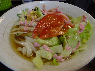 本日のモーニングは青物横丁「おにやんま」。7月の限定である梅マヨサラダうどんをいただきます。冷たいうどんの上に、レタス・トマ・きゅうり、みょうが、ハム。さらに梅マヨネーズをかけてあります。暑い夏、限定メニューを美味しくいただきました。ごちそうさまでした!「おにやんま東品川店」東京都品川区東品川4-1-20[月〜金]7:00~15:00 17:00~23:00[土日祝]7:00~15:00