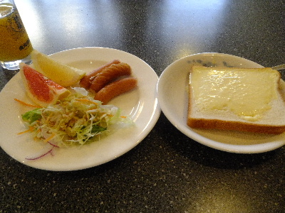 本日のお仕事は石垣島。北海道旅行から帰ってきたばかりですので、体がついていきませんね。モーニングはホテル「ハッピーホリデー」にていただきます。食パンとサラダとソーセージというシンプルな朝食。繁華街にも近く便利な場所にあります。人気の石垣島で、出張旅費の範囲で泊まれたことに感謝しなくてはいけませんね。どうもお世話になりました!「ホテルハッピーホリデー石垣島」沖縄県石垣市登野城16ホテルハッピーホリデー石垣島 (その他 / 石垣市)昼総合点★★☆☆☆ 2.0