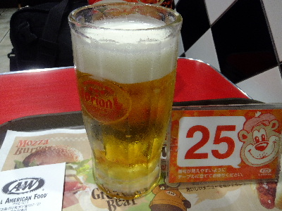 本日は宮古島でお仕事。空港まで戻ってきて、少しだけ時間がありますね。「A&W」で小休止と致しましょう。なんと、ビールがあるのですね。オリオンビールの生をいただきましょう。仕事の後の一杯は格別です。ビールのお供はチーズバーガーで。ハンバーガーとビールという幸せな組み合わせ。美味しくいただきました。さて、那覇へと戻りましょう。どうもごちそうさまでした!「A&W 宮古空港店 (エイアンドダブリュ)」沖縄県宮古島市平良字下里1657-1288:00~20:00A&W 宮古空港店 (ハンバーガー / 宮古島市)夜総合点★★★☆☆ 3.0