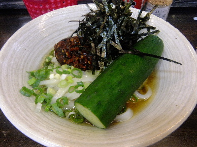 本日のモーニングは青物横丁「おにやんま」。8月の限定がまだでしたね。今月は高菜うどん、お助けきゅうり付き。辛めの高菜ペースト。唐辛子含有量高し。きゅうりがあって助かりました。週がわりの天ぷらはソーセージ。こちらも美味しくいただきました。「おにやんま東品川店」東京都品川区東品川4-1-20[月〜金]7:00~15:00 17:00~23:00[土日祝]7:00~15:00