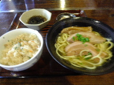 本日は石垣島でお仕事。暑いですね・・・ランチをいただいたのは「ゆらてぃく」にて。石垣牛や近海まぐろの定食もありましたが、さっぱりとおそばにしましょう。八重山そばと迷いましたが、三枚肉そばのセットで。じゅーしーと小鉢が付いております。ほんのり甘みのあるスープ。やわらかいお肉。美味しくいただきました。ビールで一杯といきたかったですが、お仕事。午後も頑張りましょう。どうもごちそうさまでした!「ゆらてぃく」沖縄県石垣市美崎町8-1 大原ホテル11:00~22:00ゆらてぃく (沖縄料理 / 石垣市)昼総合点★★★☆☆ 3.0