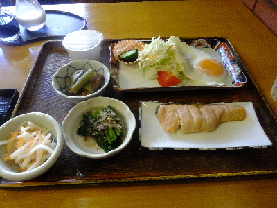 本日のモーニングは「静内シティホテル」にて。バイキング形式ではなく、定食メニュー。1階の喫茶店のようなところで和定食をいただきます。ご飯、味噌汁に焼魚はシャケ。バイキング付属の小さいものではなく威風堂々。サラダに目玉焼ききゅうりのお漬物。小鉢が3つで、ほうれん草おひたし、大根なます、さつま揚げ煮物。納豆も付いていました。ほっとする家庭的なメニュー。美味しくいただきました。静内駅からも繁華街からも近くて便利ですが、室内設備はオールド。夏のピークでも価格据え置きは嬉しかったですね。どうもお世話になりました!「静内シティホテル」北海道新ひだか町静内本町2 静内シティホテル (旅館・オーベルジュ(その他) / 静内駅)昼総合点★★★☆☆ 3.0