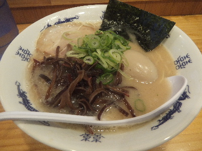 本日は九段下で終日お勉強。ランチは飯田橋のほうへ少し歩き、「博多ラーメンセンター」へ。券売機で特製ラーメンをぽちっとな。麺を固めでお願いします。ビールとチュウハイがアルコールメニューとしてありますが、ザ・我慢。ラーメンがやってまいりました。ネギ、チャーシュー、きくらげ、玉子、海苔。濃厚な豚骨スープ、なかなか美味しいですね。麺も小麦の味がする本場スタイル。美味しくいただきました。どうもごちそうさまでした!「博多ラーメンセンター」東京都千代田区飯田橋1-8-7 有田ビル 1F[平日]11:00~23:00[土・日・祝]11:00~20:00博多ラーメンセンター (ラーメン / 飯田橋駅、九段下駅、水道橋駅) 昼総合点★★★★☆ 4.0