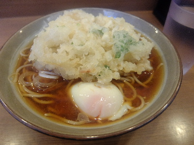 本日のウオーキングは浅草橋スタート。寒いと思っておりましたら、雪がちらついてきましたね。秋葉原まできたので「あきば」でモーニングと致しましょう。天玉そばをお願いします。先客はなし。お水をいただきながら、お蕎麦を待ちます。立ち食いジャンルのお蕎麦屋さんなのですが、椅子席があります。お薬をいただきながら3分ほどで出来上がりました。タマネギのかき揚げ、ワカメ、ネギ、そしてお蕎麦。温かいおつゆが寒いなか歩いてきた身にはしみますね。揚げ置きですが、まだまだ元気アルかき揚げもなかなかです。ちょっと太目のお蕎麦なのですね。どうもごちそうさまでした!「あきば」東京都台東区台東1-10-3 第95新井ビル 1F6:30~15:00日祝休あきば (立ち食いそば / 秋葉原駅、末広町駅、岩本町駅) 昼総合点★★★☆☆ 3.5