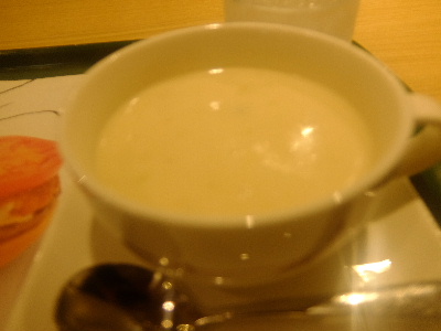 本日は熊本居酒屋一人旅。居酒屋、バー、立飲みのあとは〆のハンバーガーをいただきましょう。「モスバーガー」でオーダー、テーブル席で待ちましょう。ドリンクは大好きなクラムチャウダーで。ビールがあったらビールなのですが・・・ハンバーガーは期間限定のクリームチーズテリヤキバーガー。醤油と味噌の甘さがある和風のテリヤキソースに、国産バターを食わせてコクを出したクリームチーズをトッピング。レタスたっぷり、美味しくいただきました。さて、そろそろホテルに帰りましょう。どうもごちそうさまでした!「モスバーガー 熊本三年坂通店」熊本県熊本市中央区安政町5-8[平日]09:00~01:00[土曜日]09:00~01:00[日曜日・祝日]09:00~01:00モスバーガー 熊本三年坂通店 (ハンバーガー / 通町筋駅、水道町駅、熊本城・市役所前駅) 夜総合点★★★☆☆ 3.0