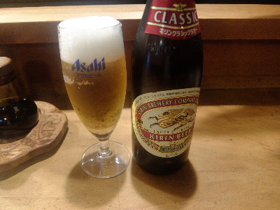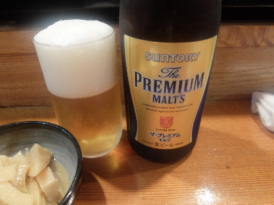 本日の居酒屋一人旅は熊本。「天草」のカウンターへ。予約で一杯のようでしたが、短時間限定で入れていただきました。まずはビールからスタートです。キリンのラガー、瓶ビール。仕事の後の一杯はしみますね。刺身の盛り合わせをお願いします。マグロ、平目、雲丹、イカ、タコ、鯛などが豪華に並びます。仕事をしてある平目が抜群、マグロも上等ですね。これは日本酒を飲まなくてはいけません。千代の園をひやでいただきましょう。地元の日本酒をきっちりと揃えております。普通に美味しい日本酒でした。馬のすじ煮込みをお願いします。お馬さんのアキレス腱。ちょっと複雑なお味です。次々と来るお客さんの一部はおやじさんのお店「瓢六」へ。近くにあるって良いですね。どうもごちそうさまでした!「天草」熊本県熊本市中央区花畑町13-23-1F 1F17:00~翌2:30日休天草 (魚介・海鮮料理 / 花畑町駅、辛島町駅、熊本城・市役所前駅) 夜総合点★★★☆☆ 3.5