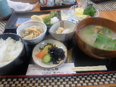 本日のお仕事は薩摩川内市。鹿児島支社で8時からの会議の後、ミーティングなどをこなしてから新幹線で川内駅へ。川内駅前の「やまぐち」でランチと致しましょう。日替わりのランチが店頭に出ておりました。・さけの塩焼き・モヤシ&油揚げ五目玉子とじ・茶碗蒸し・あさり味噌汁・ご飯・漬物・フルーツ時間があまりないので日替わりをお願いしましょう。先客グループでカウンターは一杯。次々に日替わりがやってきます。7~8分でマイターン。茶碗蒸しが小鉢に強制変更。売り切れたとのこと。茶碗蒸し気分だったので、少々残念。しゃけは普通のしゃけ。お味噌汁がなかなか美味しかったですね。どうもごちそうさまでした!「やまぐち」鹿児島県薩摩川内市鳥追町7-1 11:00~14:0017:00~23:00日休やまぐち (魚介・海鮮料理 / 川内駅) 昼総合点★★★☆☆ 3.0