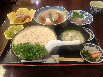 本日は長崎出張。日帰りです。少し遅いランチタイムを思案橋の「一二三亭」で。先客はなし。ゆったりとテーブル席を使わせていただきました。オーダーは一二三亭定食、ご飯をおじやに変更していただきました。アルコールはこれからお仕事ですので我慢です。アジ刺身、豚角煮、煮物、お新香、お味噌汁、おじやと豪華版ですね。新鮮なお刺身、豚角煮はお供の豆腐までしっかりと美味しいですね。胡麻とわけぎがたっぷりのおじや。ベースをつくる玉子の旨みがたまりません。また夜も来てみたいですね。どうもごちそうさまでした!「一二三亭 思案橋店」長崎県長崎市本石灰町2-19[月~金]11:30~14:0018:00~翌1:00[土]18:00~翌1:00日休一二三亭 思案橋店 (レストラン(その他) / 思案橋駅、観光通駅、西浜町駅) 昼総合点★★★★☆ 4.0