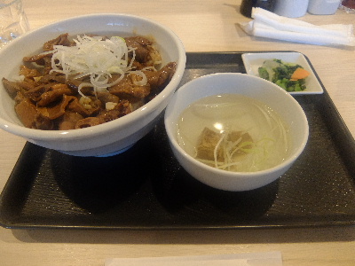 本日より九州出張。モーニングは水曜日ですので築地ではなく羽田空港でいただきます。「東京カルビ」のカウンターへ。メニューは豚丼、カルビ丼、牛タン丼、チャーシュー丼、ロース丼、ステーキ丼、ビビンバ丼などの丼メニュー。肉豆腐定食、牛タン定食、麦とろ定食などの定食メニューがあります。築地気分でしたのでホルモン丼(1026円)をいただきましょう。ホルモンは味噌味。なかなか濃厚な味付けですね。スープとお新香が爽やかな休憩タイムを提供しております。朝からがっつりいただきました。どうもごちそうさまでした。「東京カルビ 羽田空港店」東京都大田区羽田空港3-4-2 羽田空港第2旅客ターミナル 3F ターミナルロビー7:00~19:30 東京カルビ 羽田空港店 (焼肉 / 羽田空港第2ビル駅、羽田空港国内線ターミナル駅、羽田空港第1ビル駅) 昼総合点★★★☆☆ 3.0