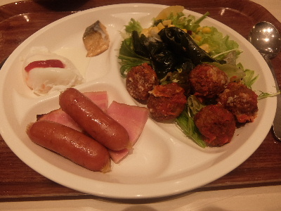 本日のモーニングは「プラザホテル プルミエ」にていただきます。バイキング形式の朝食です。レタスとワカメとコーンでサラダ。ベジタブルファーストを盛り付けます。そこに肉団子を加えてみましょう。ビーコンとソーセージ、それにポーチドエッグと焼き魚。ドリンクはコーンスープとカレー。カレーはライス抜きで盛り付けました。朝からカレーで元気になりましょう。大名のバーが近くて便利なホテルです。また利用しようと思います。どうもお世話になりました!「プラザホテル プルミエ」福岡県福岡市中央区大名1-14-13 プラザホテルプルミエプラザホテル プルミエ (その他 / 西鉄福岡駅(天神)、赤坂駅、天神駅) 昼総合点★★★☆☆ 3.0
